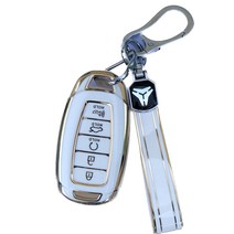 튜모 더뉴 팰리세이드 그랜저IG 벨로스터 아반떼AD LF쏘나타 투싼 i30 싼타페FE 스타리아 차량 용품 TPU 스마트키케이스 키링 키홀더, 스트랩, 스카이그레이