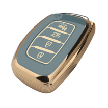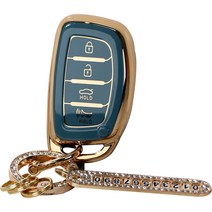 키에티 현대 LF쏘나타 올뉴 투싼 스마트 키케이스 4버튼 TPU 키홀더 단품, 골드-그레이