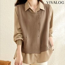 패션시그널 버튼조끼 레이어드 솔리드 블라우스 71BCB1