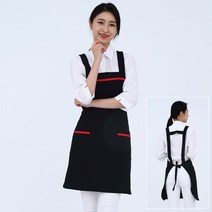 두줄엑스자 앞치마 서빙 주방 바리스타 예쁜 카페 단추 식당 어린이집 검정색 3컬러, 검정